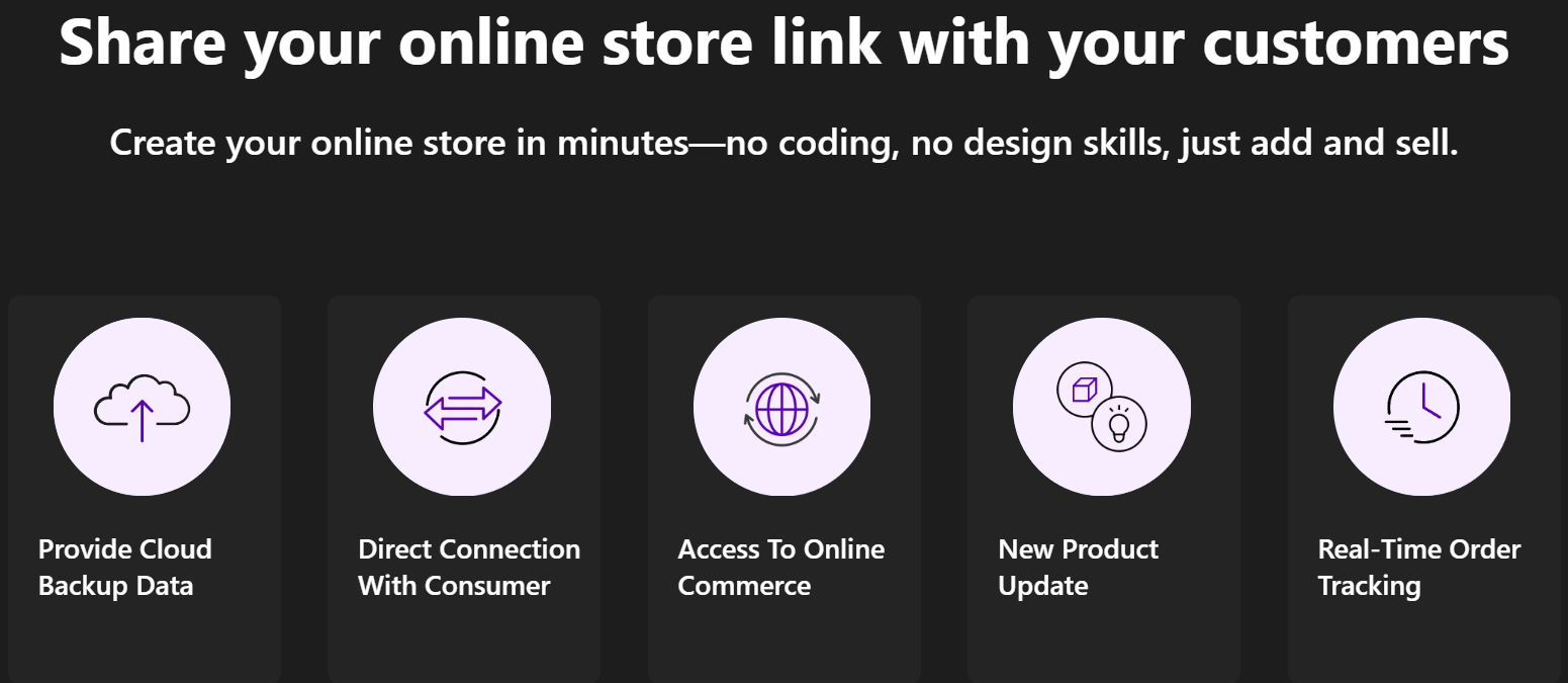 - Ready-to-use online store (no website needed)