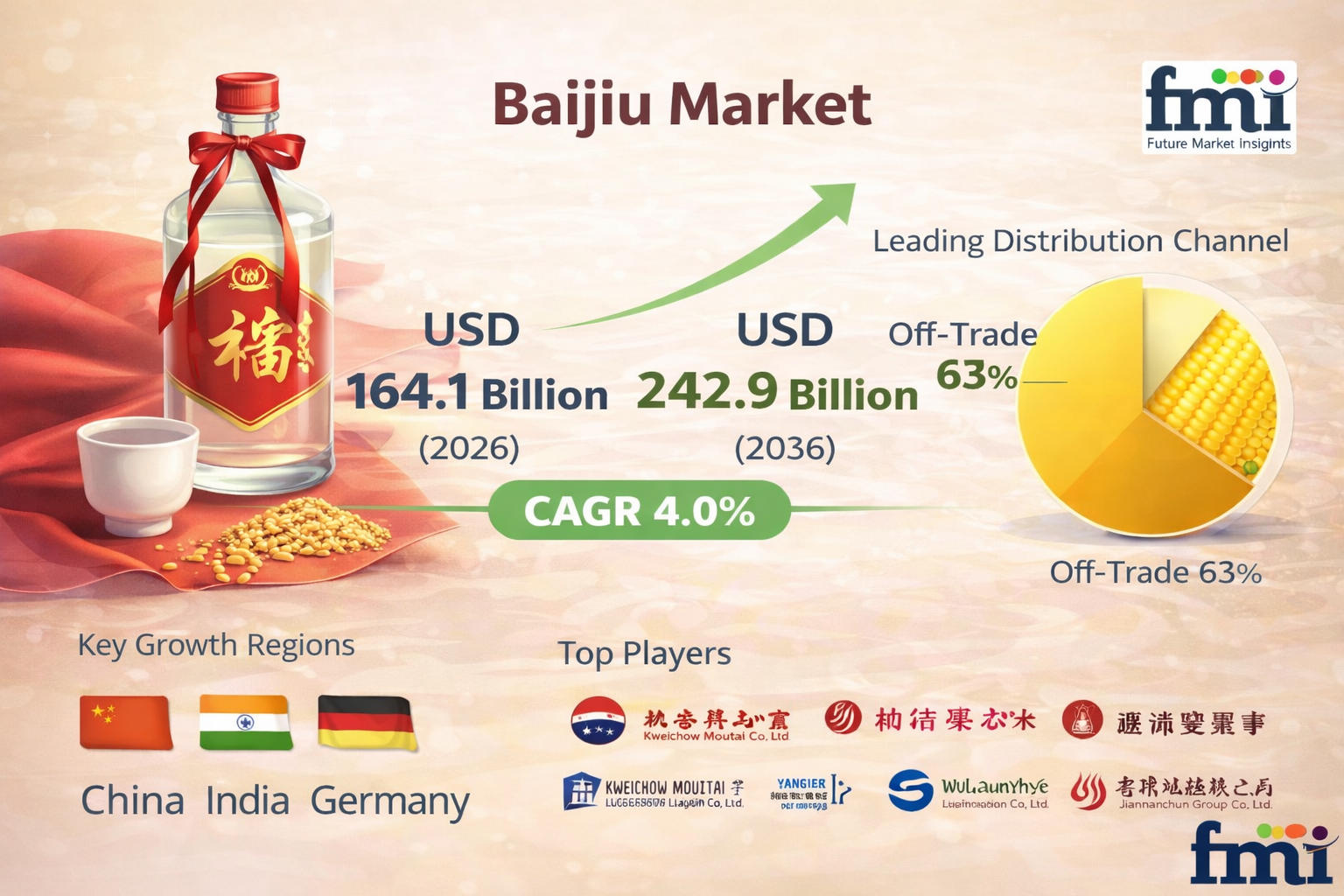 The drink remains deeply integrated into Chinese social and business culture, where it is frequently consumed during celebrations, banquets, and formal gatherings. Growing disposable income and urbanization in China are also contributing to the expansion of the premium baijiu segment.