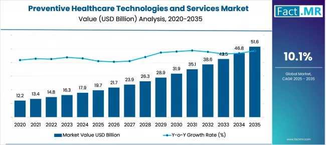 The global preventive healthcare technologies and services market is witnessing a tectonic shift from reactive treatment to proactive wellness, with its valuation projected to surge from USD 19.7 billion in 2025 to USD 51.6 billion by 2035. According to a new strategic outlook by Fact.MR, the industry will advance at a double-digit CAGR of 10.1%, driven by a global mandate to reduce the economic burden of chronic diseases through digital innovation and early intervention.