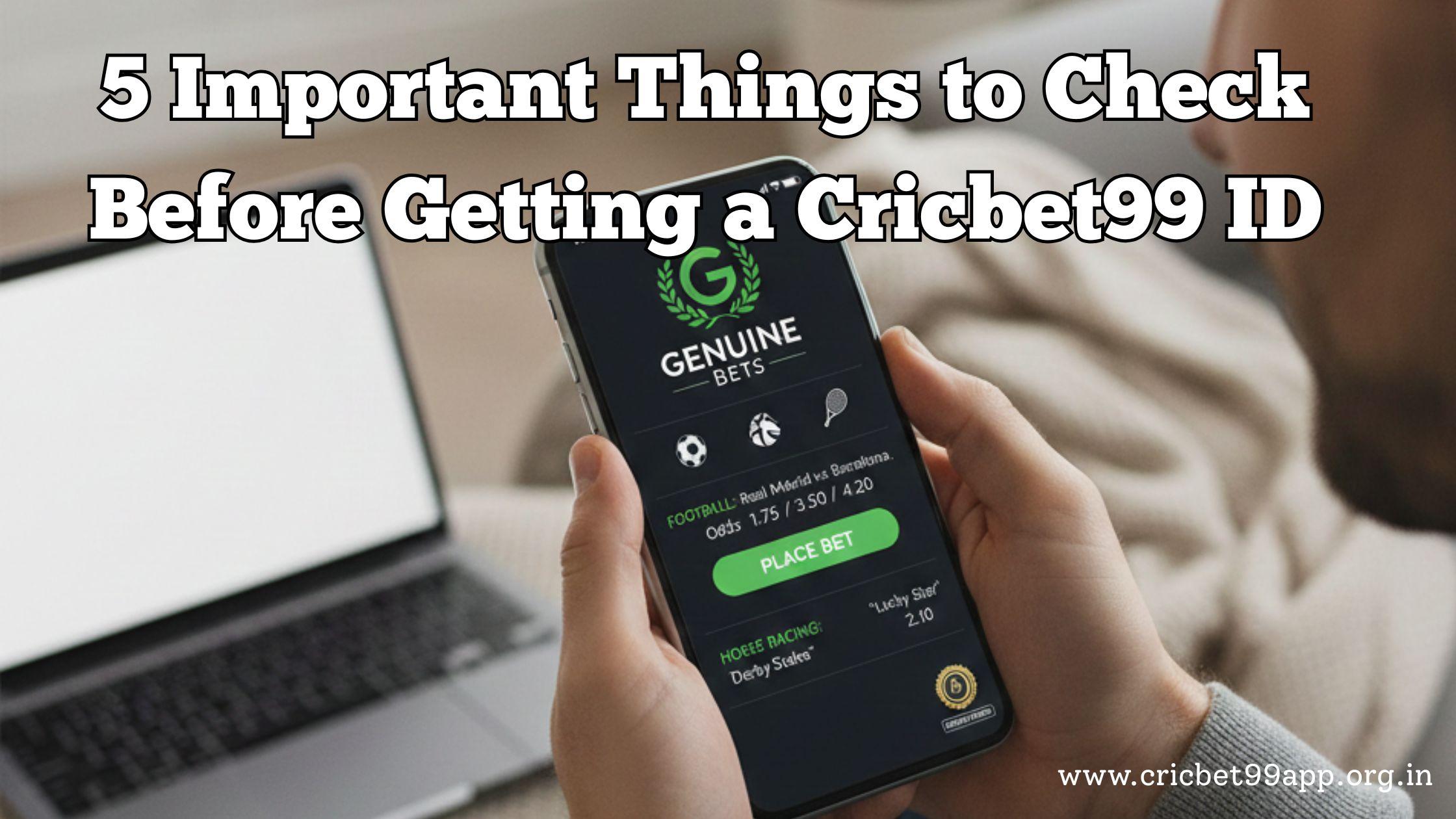 If you are planning to get a Cricbet99 ID, it is important to verify a few key things first. This guide explains the 5 most important things you must check before getting your Cricbet99 ID to ensure a safe and smooth betting experience.