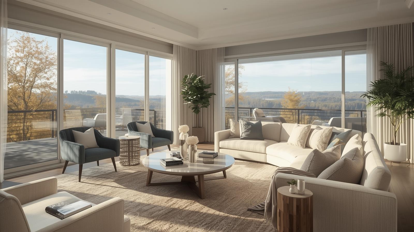 Lighting, colour tones, and furniture arrangements help make the space feel lived-in. These elements help you imagine your own furniture, décor, and lifestyle in the home.
