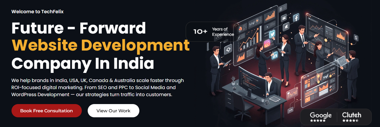 Looking to strengthen your online presence? Tech Felix, a top Digital Marketing Company in India, uses SEO optimization, content strategy, and data-driven campaigns to increase rankings and visibility. Turn your website traffic into measurable business growth with our expert solutions. Boost your brand authority – work with Tech Felix today.